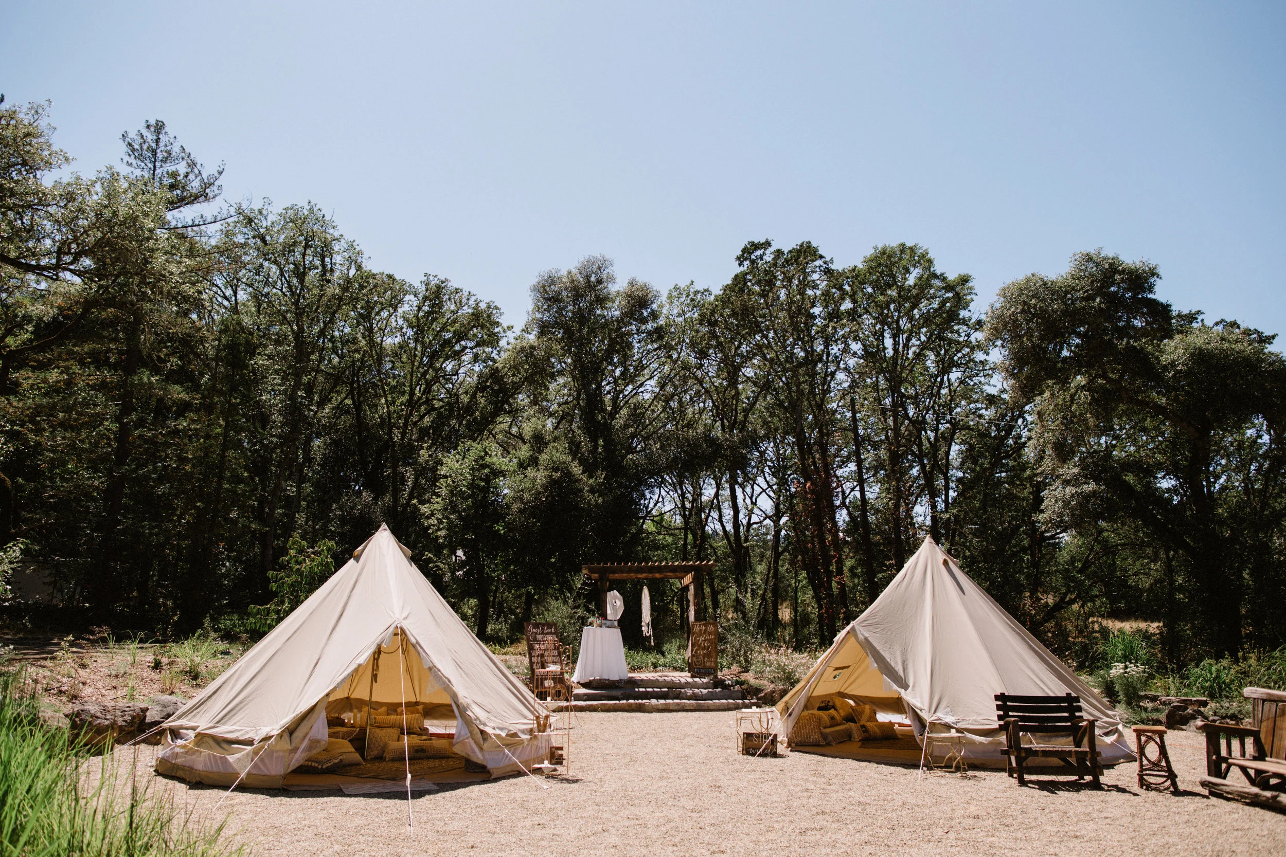 vintage Pendleton blanket, luxury bedding , rugs , table, floor pillows for lounging inside the tent , lighting inside and outside of tent, lantern , bluetooth speaker, bathroom kit, and lots of lavish decor